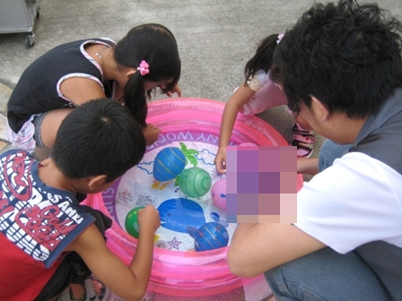 うちの店長がこんなに優しげな顔で!楽しそうに!子供さん達と一緒にヨーヨー釣りを楽しんでいるではありませんか!?
